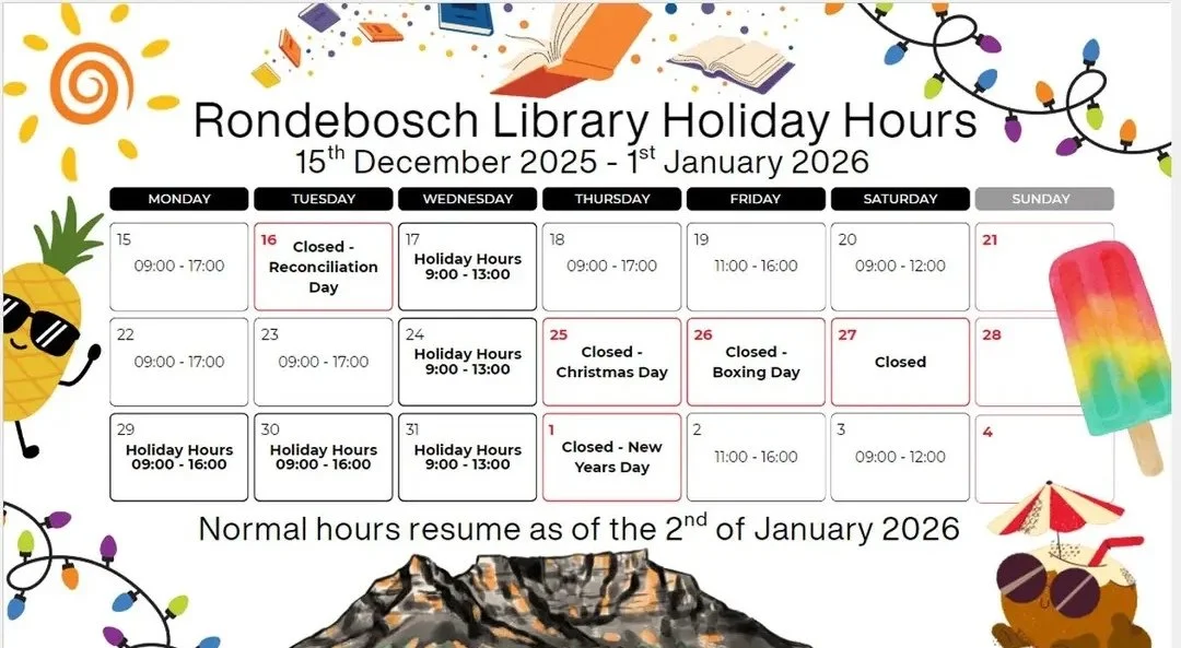 BULLETIN BOARD This service facilitates connection and grants access to capable and eager helpers; and opportunities within our community. Rondebosch Library is operating on holiday hours and will resume regular hours as of 2 January 2026. https://www.backabuddy.co.za/campaign/gladstone-the-gardener. For those who may not know the background, Gladstone helps the RCID by clearing camera foliage and also lends a hand to several residents in the neighbourhood.